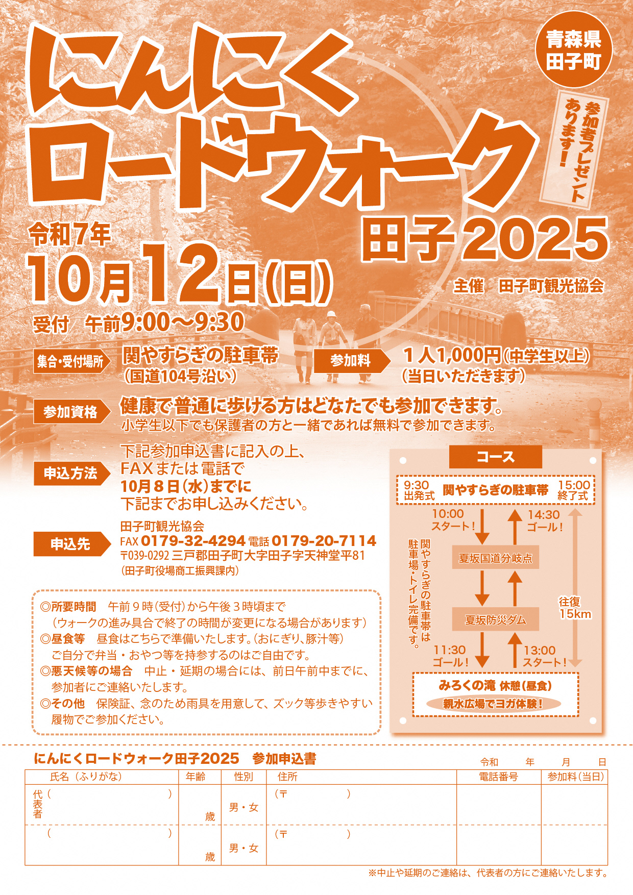 10月12日(日)に「にんにくロードウォーク田子2025」を開催します!!