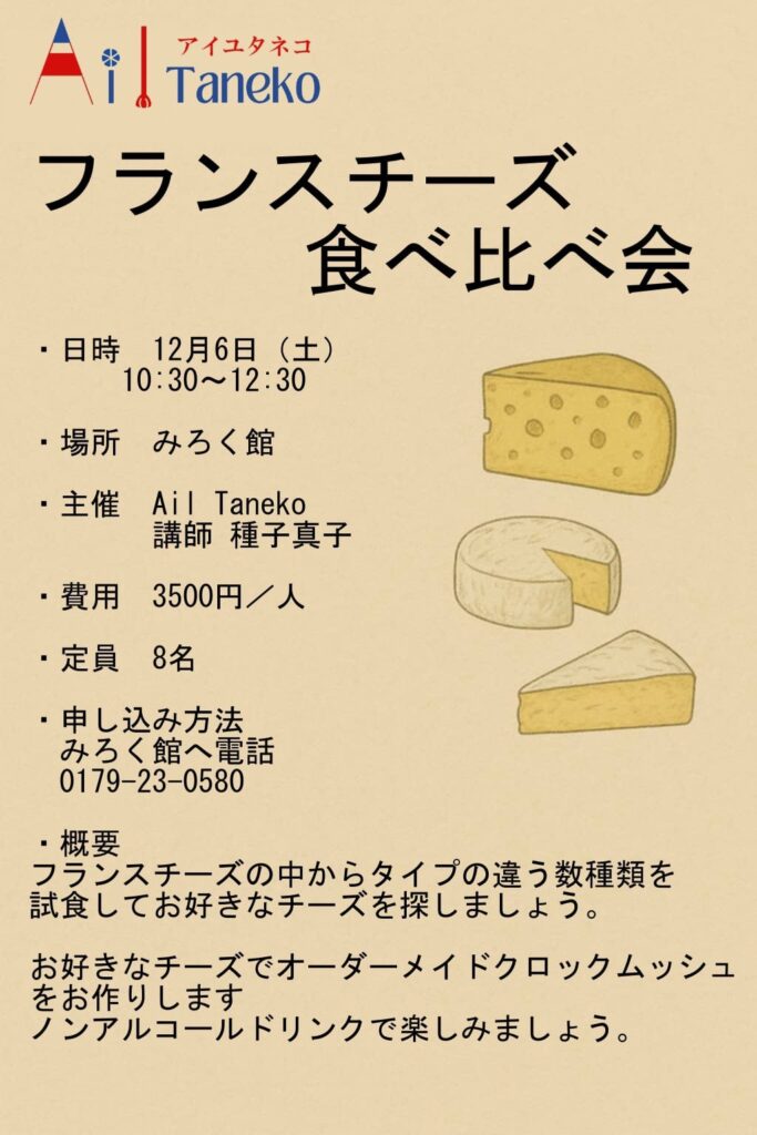 フランスチーズの中から、タイプの異なるチーズを試食して、好みに合うチーズを探しましょう。